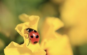 花壇のラナンキュラスにはてんとう虫?も遊びに来ていました。